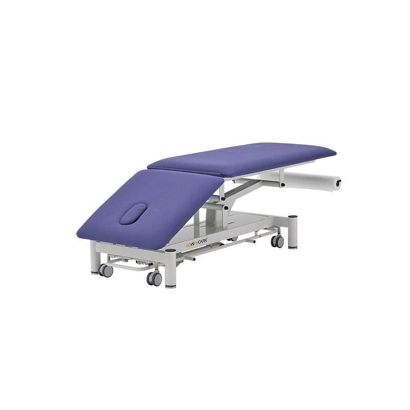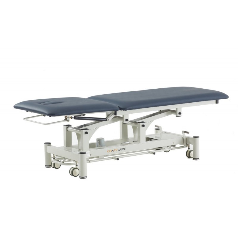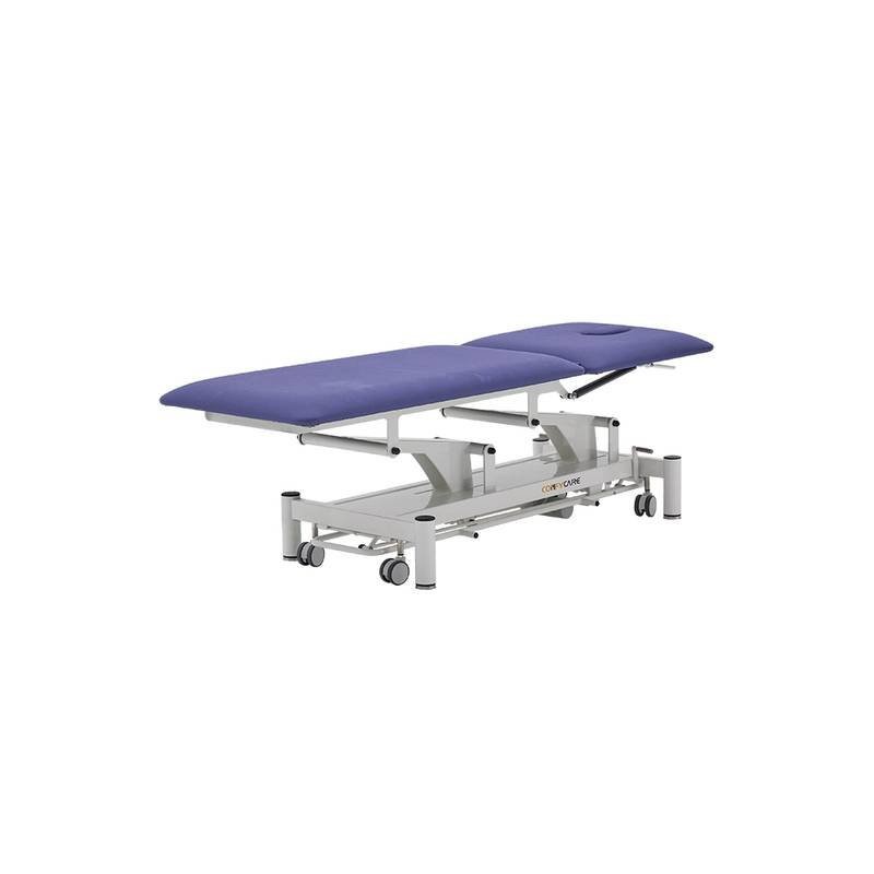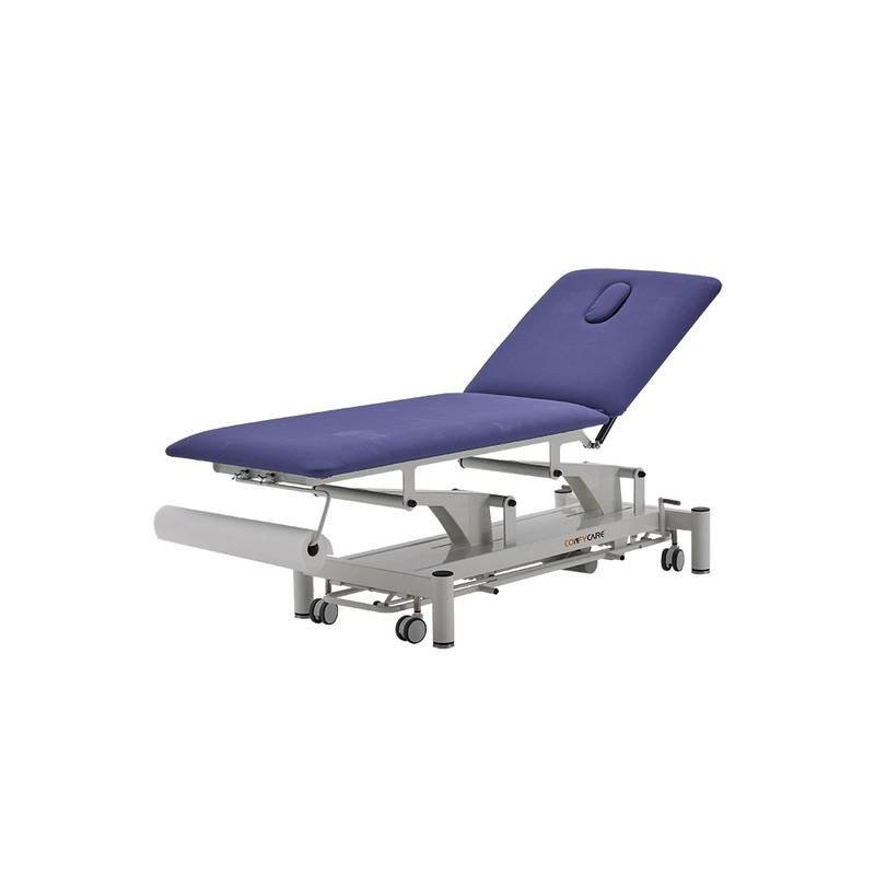 This robust two-section table withstands the most intensive treatments carried out by physiotherapists or medical professionals. With an elegant design, excellent features and standard footcontroller perimeter system, it is easy to operate. Just take it out of the box and it’s ready to go! Features: ● Electric height adjustment via perimeter footcontroller. ● Elegant design with rounded feet for increased safety. ● Backrest with face hole and plug. ● Levelling feet for uneven surfaces. ● Retractable wheels ø 75 mm. ● High-reliability TiMOTION motor. ● Lifting time: 30 seconds. ● Padding thickness: 5 cm. ● Foam density: 36 kg/m³ ● Highly durable flame-retardant vinyl upholstery. ● Certifications: CE, FDA, ISO 13485:2016 ● Load capacity: 250 kg ● Upholstery colours (options: Blue or Grey) ● Warranty: 1 year for chassis, electrical components and upholstery (except misuse).