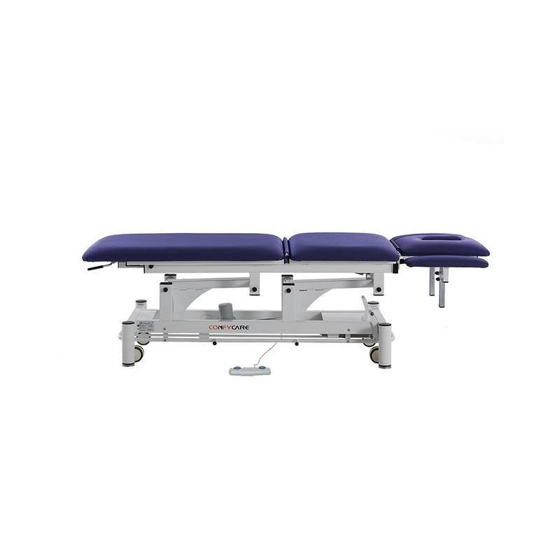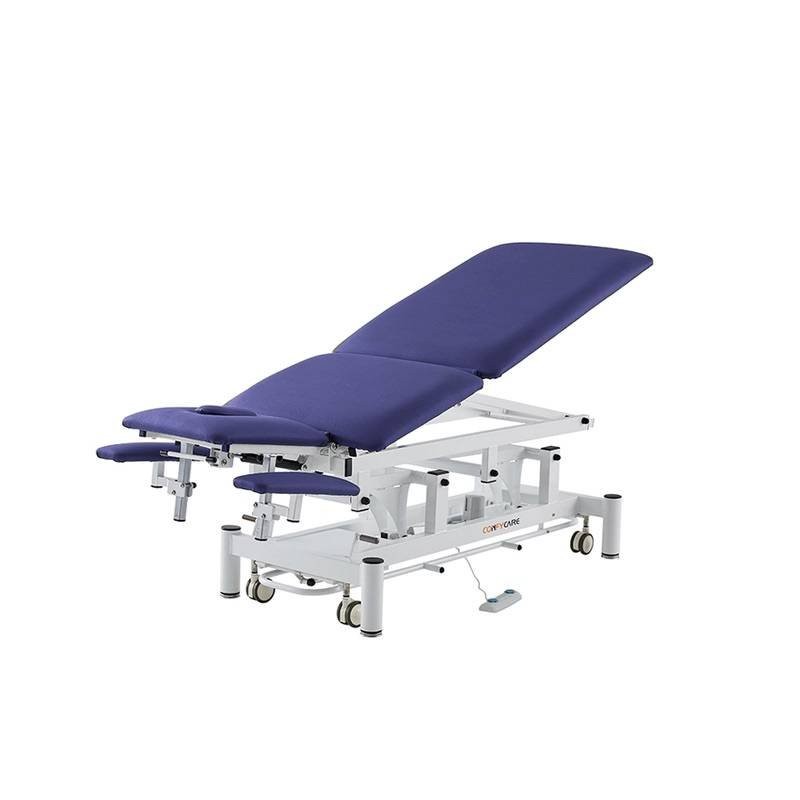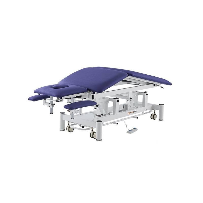5-section physiotherapy table for a wide range of treatments. Equipped with height-adjustable armrests on the head section to ensure optimal positioning when the patient is lying face down. Comes with 2 motors: table height adjustment and electric kyphosis. Standard equipment includes paper roll holder.