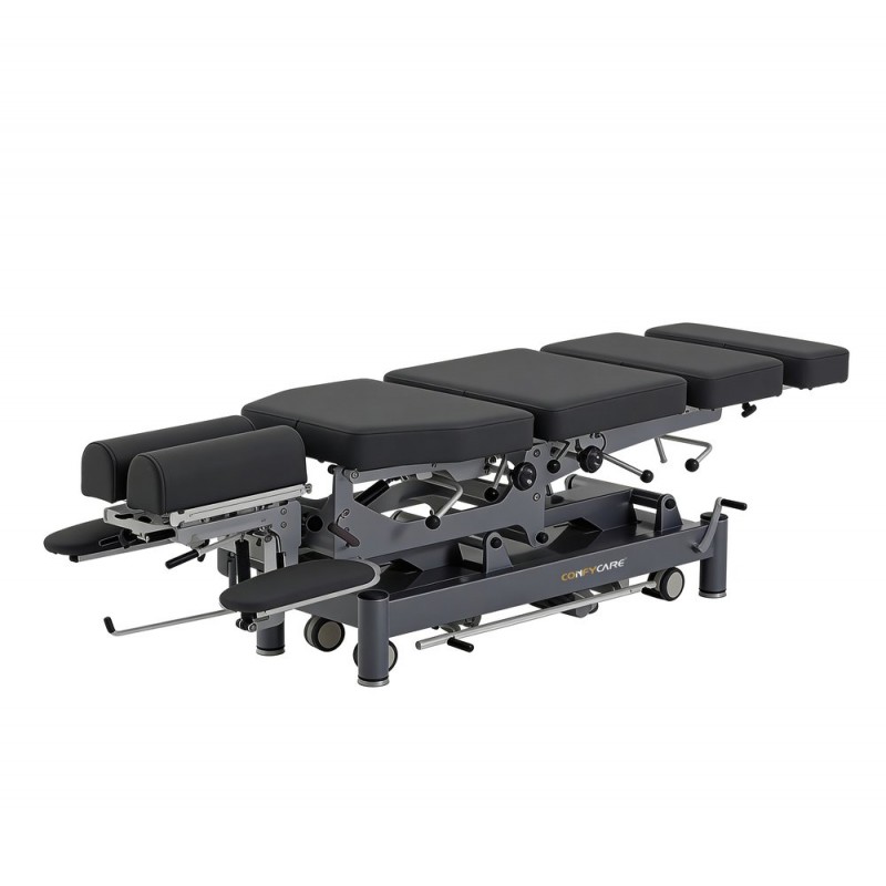 This chiropractic table with a drop system is a versatile and cost-effective solution that provides maximum therapeutic flexibility to your practice. Designed to offer precise and efficient adjustments, it incorporates cervical, thoracic, lumbar, and pelvic drop sections, all manually operated with tension control. Its robust structure and electric lifting system allow for safe, comfortable, and effective chiropractic treatments, adapting to various techniques and clinical needs. Features: ● Hi-Lo electric system operated via foot bar ● Head section with padded platform and adjustable width ● Head elevation via gas piston with a dynamic range of ±20° and vertical adjustment of 10 cm (4") ● Lateral head movement of ±15° ● Padded footrest adjustable in height and extendable ● Four drop sections: cervical, thoracic, lumbar, and pelvic ● Adjustable legs for uneven surfaces and silent wheels for smooth and quiet movement ● 4 retractable wheels with a central locking system to facilitate table transport ● High-reliability TiMOTION motor ● Height adjustment range from 46 to 80 cm (18.1”–31.5”) in approximately 30 seconds ● Padding thickness of 7.5 cm (3") ● Foam density of 100 kg/m³ (220 lbs/m³) ● Upholstered in fire-resistant PVC vinyl compliant with BS 5852 standard, resistant to stains, mold, and wear (150,000 cycles) ● Warranty: 2 years for the frame, electrical components, and upholstery (except misuse). ● Certifications: ISO13485 / MDR CE Certification approved / Registered with the U.S. FDA ● Maximum load capacity: 250 kg (551 lbs)