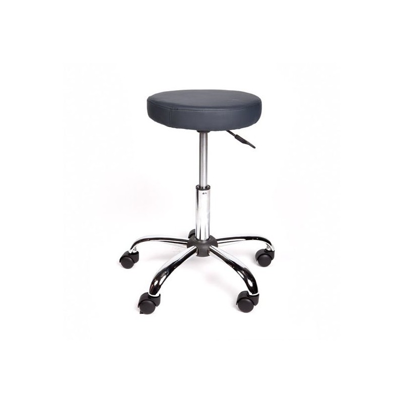 Professional stool with a round, padded seat, ideal for medical, beauty or physiotherapy clinics. Equipped with a chrome five-leg base with wheels for smooth mobility and a gas lift system to comfortably and precisely adjust the height. A functional and durable design made for everyday use.